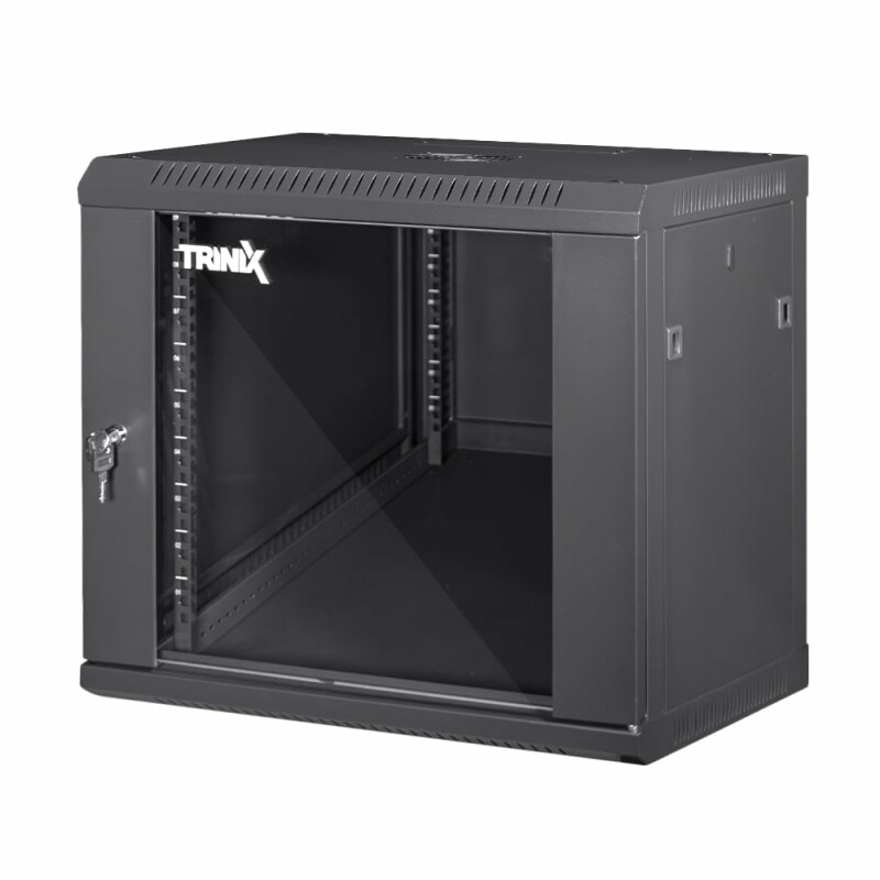 Комутаційна шафа Trinix TRX-9U/600x600x503 Black, розбірна, з дверцятами. Максимальне статичне навантаження 55 кг. Шафа зачиняється на замок, ключі у комплекті. Габаритні розміри: ширина 600 мм, глибина 600 мм, висота 9U – 503 мм.