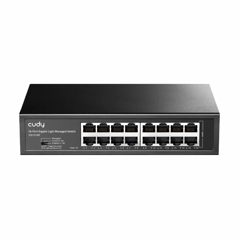 Мережевий гігабітний комутатор з функціями керування Cudy GS1016E оснащений 16 портами 10/100/1000M. Мережеві стандарти 802.3x, 802.3i 10BASE-T, 802.3u 100BASE-TX, 802.3ab 1000BASE-T, 802.3az, 802.1d, 802.1w, 802.1p, 802.1q, 802.1ab. Пропускна здатність становить 32 Гбіт/с. Підтримка режимів VLAN (ізоляції) для 1-14 портів, Extend (збільшення дальності передачі до 250 м з обмеженням швидкості до 10Mbps) для 1-14 портів.