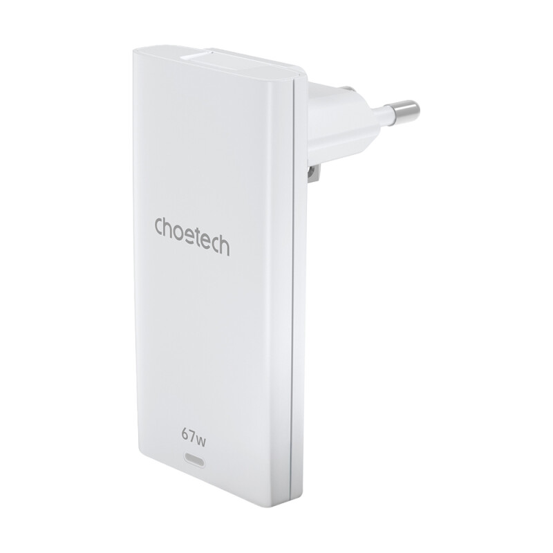 Мережевий зарядний пристрій (PD 67 Вт) з 2 USB-портами: USB-C та USB-A; вхідна напруга 100-240 В 50/60 Гц, 1.4 А макс; максимальна вихідна потужність 67 Вт; вихід 1 USB Type-C: 5В/3А, 9В/3А, 12В/3А, 15В/3А, 20В/3.35А (67 Вт макс.); вихід 2 USB Type-A: 5В/3А, 9В/3А, 12В/3А, 20В/2.25А (45 Вт макс.); спільний вихід (USB Type-A + USB Type-C): 45 Вт + 10.5 Вт; розміри 88 / 45 / 14.2 мм, вилка 13.5 мм