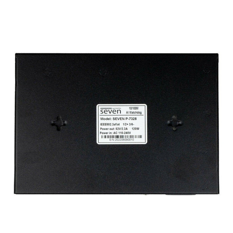 8-портовий комутатор SEVEN P-7328 дозволяє підключити до восьми PoE-пристроїв, наприклад IP-камер, без необхідності в окремих блоках живлення. Кожен порт може подавати живлення до 30 Вт, загальна потужність, яку може видати комутатор, становить 60 Вт. Також можна підключати пристрої з різною споживаною потужністю, головне — не перевищувати загальний ліміт по живленню, який може видавати комутатор.