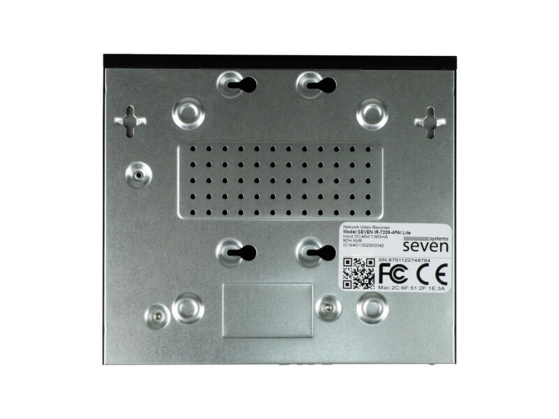 SEVEN IR-7209-4PAI — це сучасний мережевий відеореєстратор, призначений для запису, зберігання та обробки відеопотоків з IP-камер. Пристрій отримує зображення по мережі і зберігає їх на внутрішній жорсткий диск для подальшого перегляду та аналізу. Відеореєстратор підтримує установку одного SATA жорсткого диска ємністю до 8 ТБ включно, що забезпечує надійне і довготривале зберігання даних.