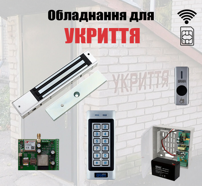 SEVEN KA-7834 - комплект, що дозволяє автоматизувати вхід до укриття під час сигналу "ПОВІТРЯНА ТРИВОГА!". У разі потреби SEVEN KA-7834 дає можливість дистанційно керувати замком. Комплект побудований на базі такого ж обладнання, за допомогою якого вмикається сирена про повітряну небезпеку. Це перевірено та надійно!