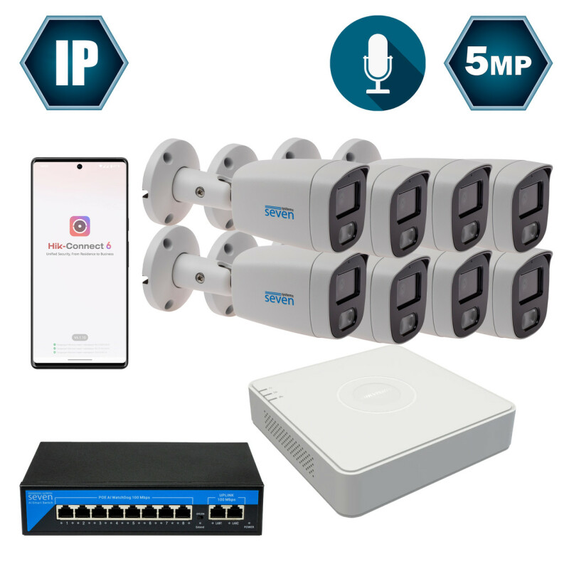 Комплект IP-відеоспостереження Hikvision на 8 циліндричних 5 Мп IP-камер HK-IP7118OW-5MP