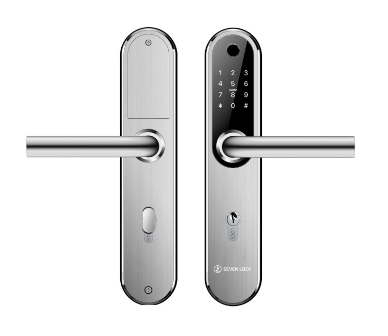 Розумний замок SEVEN LOCK SL-7768BF silver підходить для встановлення на всі сучасні двері, товщиною від 38 до 120 мм. У комплекті – розширений набір для зручного монтажу. Завдяки збільшеній ширині корпусу, замок повністю закриває отвори, що залишилися після демонтажу попереднього замка. Має отвір під циліндр із міжосьовою відстанню 85 мм. Міцний корпус із нержавіючої сталі гарантує довговічність замка, стійкість до механічних пошкоджень і несприятливих погодних умов.