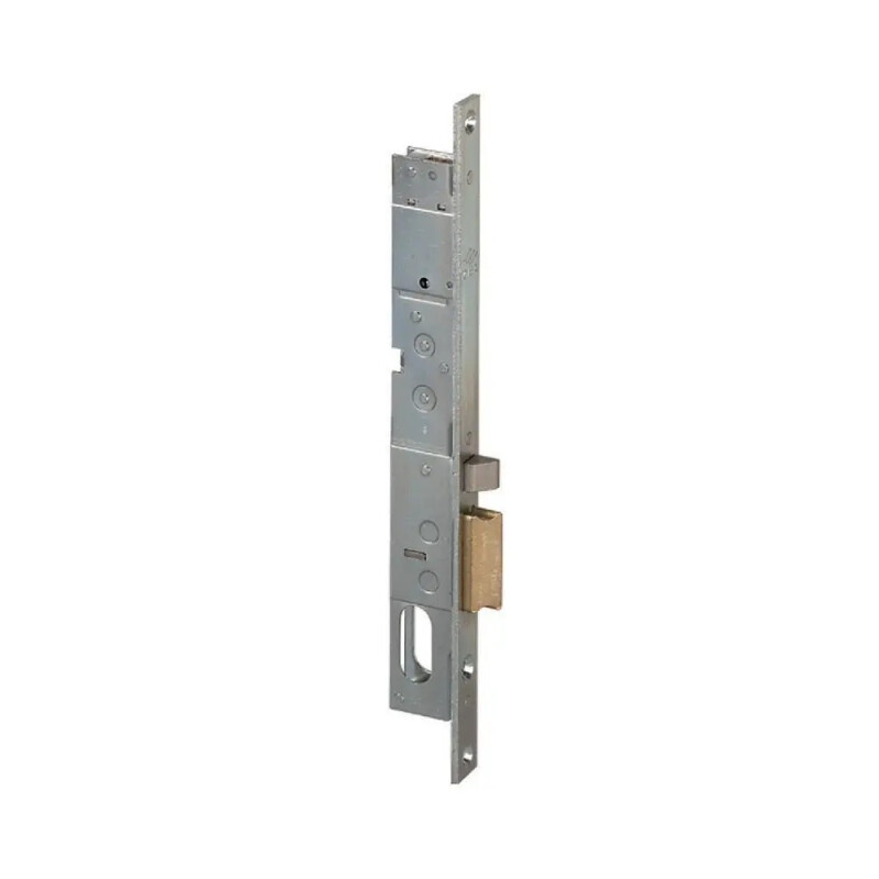 Електромеханічний замок, врізний, встановлення внутрішнє, циліндр 18 мм, 2,3 тип дверей (2-тип: двері відкриваються всередину, дверні петлі зліва, ручка справа; 3-й тип: двері відкриваються назовні, дверні петлі праворуч, ручка зліва), 12В / 2А. Відкриття відбувається подачею живлення 12В на контакти замка, також можливо відкриття ключем (циліндр з ключами в комплекті).