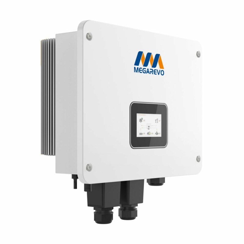 Однофазний гібридний інвертор Off-Grid Megarevo 05KL1D з номінальною потужністю 5 кВт (максимальна короткочасна потужність 7.5 кВт), з вбудованим MPPT-контролером та з вбудованим зарядним пристроєм. Діапазон напруги від сонячних панелей 100-440 В, максимальна вихідна потужність сонячних панелей 7.5 кВт. Напруга акумуляторної батареї 48 В, підтримка заряду акумуляторних батарей типу AGM/GEL/LiFePO4/Li-ion, максимальний струм заряду 100 А / розряду 100 А. Вихідна напруга 230 В, ККД 96 %. WiFi-адаптер у комплекті – для моніторингу з мобільного застосунку. Може підключатися до генератора. Можливість паралельного підключення у систему максимально 6 інверторів.